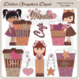 Esta colección incluye dulces niñas con tazas de café para llevar: expreso, capuchino, java y café, un corazón en un alambre retorcido con estrellitas, una estrella en alambres retorcidos con un pequeño corazón y dos gráficos de palabras coordinados: " Mocha" y "Café". TENGA EN CUENTA: Este conjunto coordina con la colección "Coffee Girls - Scrap Papers" . Este conjunto contiene 9 gráficos.