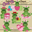 Esta colección única solo está disponible en Digital Craft Supplies. Este juego incluye seis adorables dragones con bonitos lazos para el cabello, latas de pintura llenas de pintura, pinceles, una caja de crayones de colores, un corazón rosa con la palabra "Amor", un crayón rosa con la palabra "Amor", un papel artístico con corazones pintados y arte de la palabra "Color del amor". Este conjunto exclusivo contiene 6 gráficos.