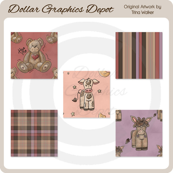 Esta colección incluye cinco mosaicos de fondo Cuddle Splash de 2" x 2". Los patrones incluyen: burros con florecitas, rayas, vacas con estrellas y lunas, cuadros y ositos de peluche con corazones y la palabra "Abrázame". TENGA EN CUENTA: Este conjunto se coordina con las colecciones"Cuddle Splash - Clip Art" y "Cuddle Splash - Scrap Papers" . Este conjunto contiene 5 gráficos de mosaicos de fondo.