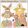 Esta colección incluye un adorable conejito que sostiene un huevo de Pascua pintado, un lindo pollito primaveral con coloridas margaritas, bonitos huevos de Pascua pintados con una margarita amarilla y una colmena con un corazoncito, abejorros, margaritas rosadas y azules y flores pintadas. Huevos de Pascua. TENGA EN CUENTA: Este conjunto coordina con las colecciones "Easter Splash 1 - Scrap Papers" y "Easter Splash - Background Tiles" . Este conjunto contiene 4 gráficos.