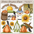Esta colección incluye una canasta llena de calabazas de otoño, un pedazo de pasto con el sol y la palabra "Bendiciones de la cosecha", un espantapájaros de otoño, un pedazo de pasto con una calabaza y un cuervo negro, una oveja recatada con una calabaza y un cuervo negro. un hermoso girasol, un pedazo de pasto con una calabaza, un cuervo negro y girasoles, tallos de maíz, un pedazo de pasto con una calabaza, un cuervo negro y un letrero de madera con la palabra "Calabazas" y uno de 8" x Fondo de girasol de 8". Este conjunto contiene 10 gráficos.