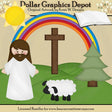 Esta colección única solo está disponible en Digital Craft Supplies. Este conjunto incluye a Jesús, una oveja lanuda, colinas cubiertas de hierba, una cruz de madera, un pino, el sol, un arco iris y la Santa Biblia. Este conjunto exclusivo contiene 8 gráficos.