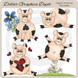 Esta colección incluye cuatro adorables cerdos manchados: uno con bonitas flores azules, otro acostado, otro sentado con corazones rojos y el tercero saltando de alegría sobre una colina cubierta de hierba y flores. Este conjunto contiene 4 gráficos.