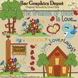 Esta colección incluye una casa, colinas cubiertas de hierba, árboles, flores coloridas, abejorros, pequeños corazones rojos, un corazón rojo con una estrella dorada en el medio, un dulce pajarito azul, un borde de estrella, un borde de corazón, un poste de madera con un letrero que dice: "Bienvenidos amigos, todos y cada uno" y dos gráficos con palabras: "El más grande de ellos es el amor" y "Vive, ama, ríe". Tenga en cuenta: este conjunto coordina con la colección "Live, Love, Laugh - Scrap Papers" . Este conjunto contiene 10 gráficos.