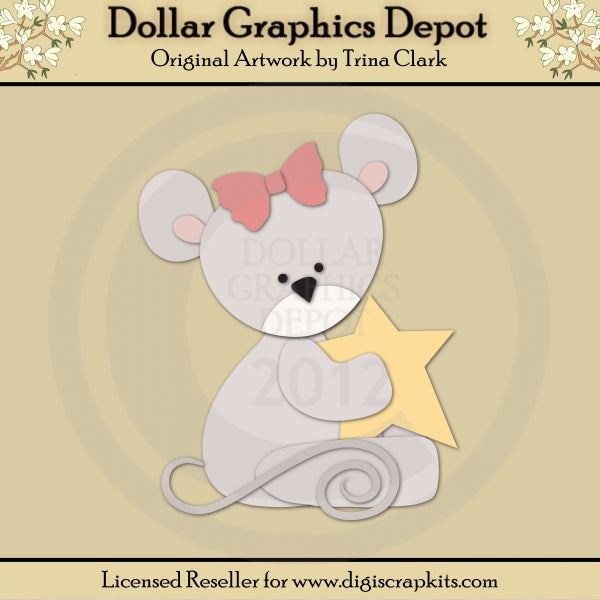 Esta colección incluye archivos de corte que se pueden usar para crear este adorable proyecto de artesanía con un ratón (que se muestra "terminado" en la vista previa): un lindo ratoncito con un lindo lazo para el cabello y una estrella.