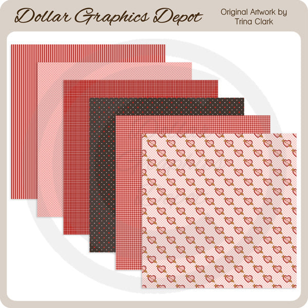 Esta colección incluye seis papeles de desecho de San Valentín de 12" x 12". Los patrones incluyen: rayas, lunares (2), cuadros, cuadros y corazones con flechas. TENGA EN CUENTA: Este conjunto coordina con la colección "My Feathered Valentine - Clip Art" . Este juego contiene 6 papeles para álbumes de recortes.