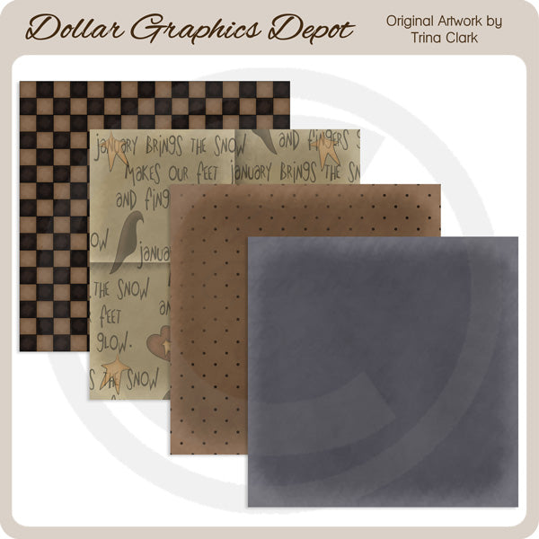 Esta colección incluye cuatro papeles de desecho de muñecos de nieve de 12" x 12". Los patrones incluyen: damas, arte de palabras remilgado con cuervos, corazones y estrellas, lunares y un sólido sucio. TENGA EN CUENTA: Este conjunto coordina con la colección "Prim Snowmen - Clip Art" . Este juego contiene 4 papeles para álbumes de recortes.