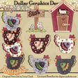 Esta colección incluye gallinas campestres, una pila de gallinas, un gallinero, un letrero de madera con la palabra "Eggs 4 Sale" y un gráfico con la palabra "My Chickies". Este conjunto contiene 8 gráficos.