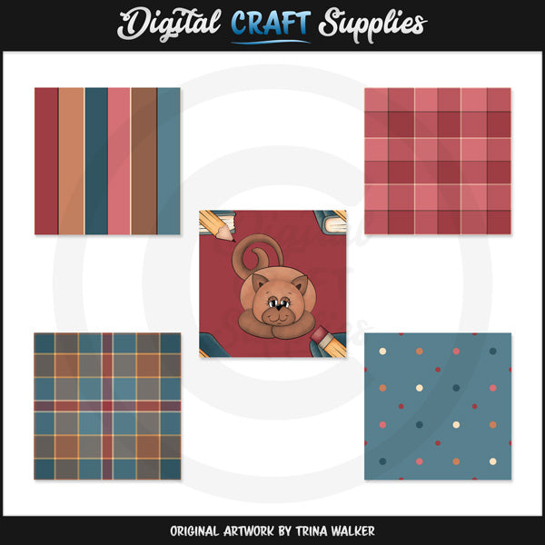 Esta colección incluye cinco mosaicos de fondo de gatitos escolares. Los patrones incluyen: rayas, cuadros vichy, cuadros, lunares y gatitos con libros y lápices. TENGA EN CUENTA: Este conjunto se coordina con "School Kitties 1 - Clip Art", "School Kitties 1 - Papeles de desecho", "School Kitties 1 - Bordes y etiquetas", "School Kitties 1 - Sellos digitales", "School Kitty 1 - Corte Colecciones "Archivos / Patrones de piezas de papel" y "School Kitty 2 - Archivos de corte / Patrones de piezas de papel". Este conjunto contiene 5 gráficos de mosaicos de fondo.