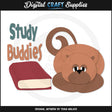 Esta colección incluye archivos de corte que se pueden usar para crear este adorable proyecto de manualidades con un gatito escolar (que se muestra "terminado" en la vista previa): un gatito con un libro escolar y una palabra escrita "Study Buddies".