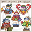 Esta colección incluye adorables muñecos de nieve de invierno, con suéteres, gorros, bufandas y manoplas de invierno, bastones de caramelo, una paleta de menta, una taza de chocolate caliente y un cono de helado. Este conjunto contiene 5 gráficos.