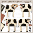 Esta colección incluye cuatro adorables vacas manchadas: una con un sombrero de paja y cintas en la cola, una con un lazo para el cabello, una con un lazo para el cuello y otra con la palabra "I Love Cows" y tres papeles a juego de 12" x 12". Este conjunto contiene 7 piezas (4 gráficos y tres imprimibles).