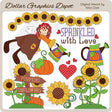 Esta colección incluye un ángel de otoño con una jarra de agua, un trozo de hierba con calabazas, girasoles y un cartel de madera que dice: "Calabazas - Girasoles", una calabaza de otoño, un bonito girasol, un trozo de hierba con girasoles, una pintura jarra de agua, corazones rojos, un borde de girasol y un gráfico con la palabra "Sprinkled with Love". TENGA EN CUENTA: Este conjunto coordina con la colección "Sprinkled with Love - Scrap Papers" . Este conjunto contiene 9 gráficos.