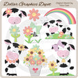 Esta colección incluye adorables vacas de verano, parches de hierba, bonitas flores, un arcoíris con nubes, una jarra de leche y un cubo de metal lleno de flores frescas de verano. Este conjunto contiene 9 gráficos.