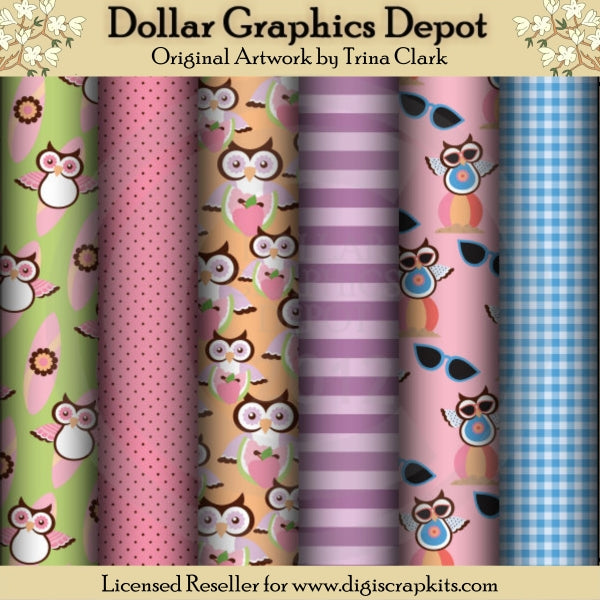 Esta colección incluye seis papeles de desecho de búhos de verano de 12" x 12". Los patrones incluyen: diseños de lunares, rayas, cuadros y tres búhos. TENGA EN CUENTA: Este conjunto coordina con la colección gráfica "Summer Owls 1" . Este juego contiene 6 papeles para álbumes de recortes.