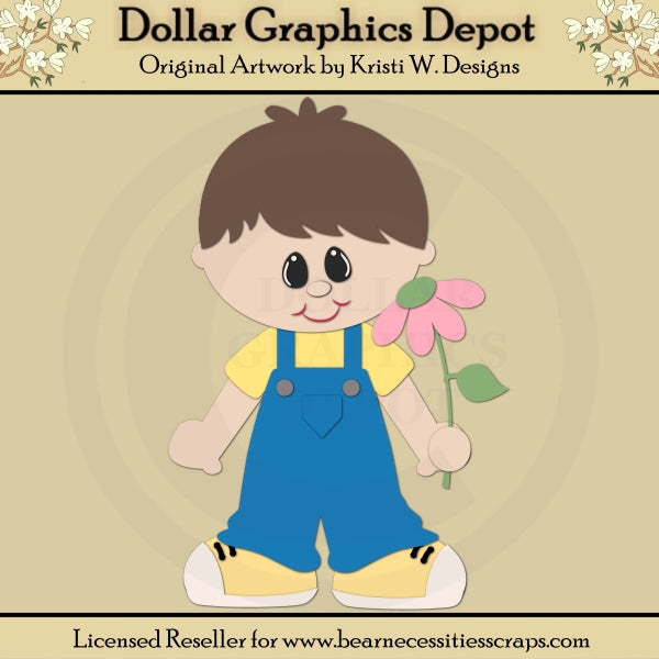 Esta colección única solo está disponible en Digital Craft Supplies. Este conjunto exclusivo incluye archivos de corte que se pueden usar para crear este adorable proyecto de manualidades para el Día de San Valentín (que se muestra "terminado" en la vista previa): un dulce niño, vestido con un mono de mezclilla azul, una camiseta y zapatillas de deporte, sosteniendo una bonita flor rosa. .