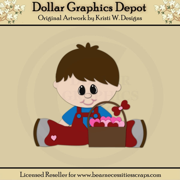 Esta colección única solo está disponible en Digital Craft Supplies. Este conjunto exclusivo incluye archivos de corte que se pueden usar para crear este adorable proyecto de manualidades para el Día de San Valentín (que se muestra "terminado" en la vista previa): un dulce niño, vestido con un mono, una camiseta y zapatillas de deporte, con una canasta de coloridos corazones de San Valentín. .