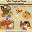 Esta colección incluye una canasta tejida con muchas frutas y verduras coloridas: uvas, peras, manzanas, calabazas, maíz y berenjenas, bonitas hojas de otoño, mazorcas de maíz con cáscara, calabazas con follaje verde y una cornucopia llena de frutas y verduras. - maíz, uvas, manzanas, calabazas y calabacines, un letrero de otoño a juego (o etiqueta colgante) y un gráfico con la palabra "Feliz Día de Acción de Gracias". **BONIFICACIÓN: Este conjunto también incluye un gráfico de palabras "Feliz Día de Acción de Gracias" de color marfil (no se muestra) para usar en fondos de colores más oscuros. Este conjunto contiene 8 gráficos.