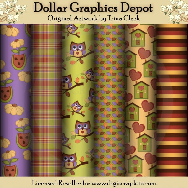 Esta colección incluye seis papeles de desecho de otoño de 12" x 12". Los patrones incluyen: sandía y girasol, bonitos cuadros, búhos en las ramas de los árboles, coloridas hojas otoñales, casas y corazones, y rayas otoñales. TENGA EN CUENTA: Este conjunto coordina con la colección gráfica "Hay una temporada" . Este juego contiene 6 papeles para álbumes de recortes.