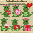 Esta colección única solo está disponible en Digital Craft Supplies. Este juego incluye seis adorables dragones de San Valentín, bonitos lazos para el cabello de color rosa, un corazón rojo con la palabra "Hot Stuff", una caja de chocolates en forma de corazón con un bonito lazo rosa, un globo rojo en forma de corazón con la palabra "Burnin Love", un globo esmerilado. cupcake con chispas y un corazón rojo canela encima, un corazón de San Valentín con la palabra "Be Mine" y un regalo de San Valentín envuelto con un bonito lazo. Este conjunto exclusivo contiene 6 gráficos.