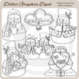 Esta colección incluye adorables muñecos y damas de nieve de San Valentín, con suéteres, sombreros y bufandas de invierno, corazones de San Valentín festoneados, corazones recortados en una cuerda con la palabra "LOVE", un corazón festoneado con una dama de nieve y una planta de corazón festoneada con " Sé mío" arte de la palabra. TENGA EN CUENTA: Este conjunto coordina con la colección "Valentine Snow Couple - Clip Art" . Este conjunto contiene 6 sellos digitales.