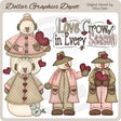 Esta colección incluye adorables muñecos de nieve con trajes de invierno, sombreros, abrigos, orejeras y narices de zanahoria, muchos corazones rojos bonitos, un pajarito azul y un gráfico con la palabra "El amor crece en cada temporada". TENGA EN CUENTA: Este conjunto coordina con la colección "Valentine Snowfolk - Scrap Papers" . Este conjunto contiene 5 gráficos.