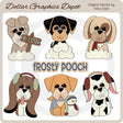 Esta colección incluye seis cachorros de invierno: Schnauzer, Coonhound, Beagle, Basset Hound, Golden Retriever y Dálmata, nieve esponjosa, orejeras, un lindo muñeco de nieve, un letrero de madera con la palabra "Let It Snow" y un "Frosty". Gráfico de arte de palabras "Pooch". Este conjunto contiene 7 gráficos.