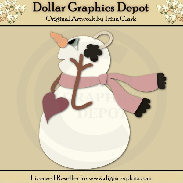 Esta colección incluye archivos de corte que se pueden usar para crear este adorable proyecto artesanal de dama de las nieves: una dama de las nieves con nariz de zanahoria, orejeras, bufanda de invierno y un bonito corazón.