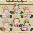 Esta colección incluye seis niñas adorables, que visten bonitos vestidos con estampado de lunares y cuadros, y hermosos sombreros de flores y plumas, bolsas de compras de diseñador, carteras bonitas, ositos de peluche, muñequitas dulces y un cono de helado. Este conjunto contiene 6 gráficos.