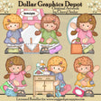Esta colección incluye seis niñas adorables, con bonitos vestidos, collares de perlas y pinzas para el cabello con flores, una boutique rosa y blanca, una canasta tejida con un bonito forro, carteras de diseñador, bolsas de compras de boutique, un espejo de boutique, un bonito tocador de madera, un estuche de maquillaje, loción corporal, frascos de perfume y un cono de helado. Esta colección gráfica fue creada utilizando una técnica de coloración especial que realza el sombreado y la textura de los gráficos. Son muy bonitos... ¡y únicos! Este conjunto contiene 5 gráficos.