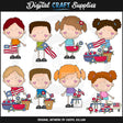 Esta colección incluye ocho pequeños niños con figuras de palitos, banderas estadounidenses, rodajas de sandía, flores rojas y azules, cuencos llenos de estrellas rojas, blancas y azules, bonitas flores en macetas de barro, tarros de cristal llenos de flores recién cortadas y un cordero patriótico. Este conjunto contiene 8 gráficos.