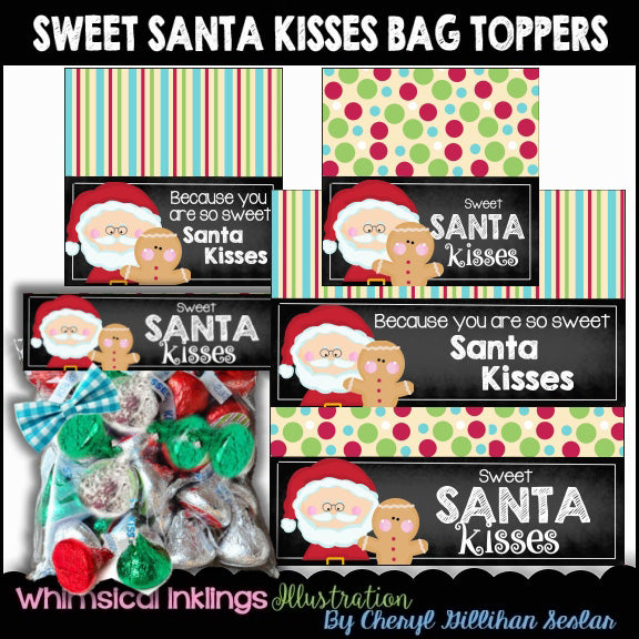 Adornos para bolsas con besos dulces de Papá Noel (WI)