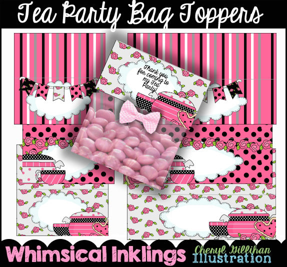 Fiesta del té... Juego de 3 adornos en 2 tamaños diferentes