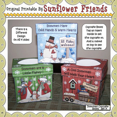 Cajas para cupcakes de muñeco de nieve... Juego de 3