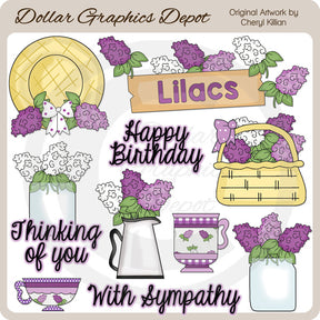 Esta gran colección incluye un sombrero de paja con bonitas lilas y un lazo de lunares, un cartel de madera con "Lilas" pintado y muchas lilas bonitas, tres bonitas lilas, una cesta tejida llena de lilas y un bonito lazo de lunares, dos frascos de vidrio llenos de lilas, una jarra llena de lilas, dos tazas de té pintadas de color lila y tres gráficos de palabras coordinados: "Feliz cumpleaños", "Pensando en ti" y "Con simpatía". TENGA EN CUENTA: Este conjunto coordina con la colección "Lilac Love - Scrap Papers". Este conjunto contiene 14 gráficos.