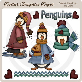 Esta colección incluye adorables pingüinos de invierno con abrigos de invierno, sombreros, bufandas, manoplas, raquetas de nieve, un estante para rick y un borde de corazón, y un gráfico con la palabra "Pingüinos". Este conjunto contiene 5 gráficos.