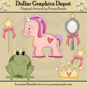 Esta colección incluye un bonito unicornio rosa, una rana manchada con una corona dorada, una varita de princesa con forma de estrella, un bonito espejo de princesa y una corona de princesa dorada y una varita con forma de estrella. Este conjunto contiene 5 gráficos.