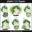 Esta colección incluye seis lindos unicornios del Día de San Patricio: cinco con tréboles estampados y uno con un bonito fondo verde sombreado. Este conjunto contiene 6 gráficos.