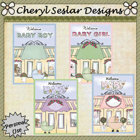 Frentes de tarjetas de bienvenida para bebé... Juego de 4
