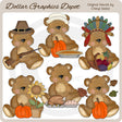 Esta colección incluye seis adorables osos de Acción de Gracias, calabazas de otoño, sombreros de peregrino, un rifle, un pastel de calabaza, un tocado indio, una cornucopia llena de frutas, una planta de girasol en maceta, un pavo asado en una bandeja, un pastel de cerezas y un colorido otoño. hojas. Este conjunto contiene 6 gráficos.
