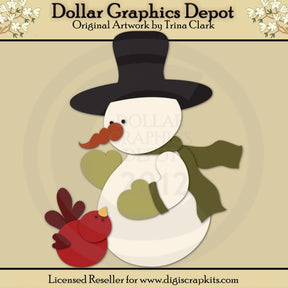 Esta colección incluye archivos de corte que se pueden usar para crear este adorable proyecto artesanal de muñeco de nieve (que se muestra "terminado" en la vista previa): un muñeco de nieve con sombrero de copa, bufanda de invierno y guantes, y un dulce pajarito rojo.