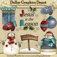 Esta colección incluye un muñeco de nieve con una bufanda de invierno roja y marrón claro, orejeras verdes, manoplas verdes y pequeños copos de nieve rojos, una dama de las nieves con un vestido de invierno azul, un sombrero rojo, orejeras color aguamarina, una bufanda color aguamarina y una rama de baya de acebo. , un cartel invernal en la nieve que dice "Navidad... La razón para creer", una manopla roja con un copo de nieve, una manopla azul con un copo de nieve, un regalo de Navidad bellamente envuelto con un bonito lazo, un adorno navideño azul brillante, un adorno navideño rojo con rayas y copos de nieve, y un gráfico artístico con palabras de bayas de acebo que dice "Jesús es la razón". Este conjunto contiene 9 gráficos.