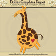 Esta colección incluye archivos de corte que se pueden usar para crear este adorable proyecto artesanal de jirafa de la jungla (que se muestra "terminado" en la vista previa): una linda jirafa moteada con un pequeño corazón rojo.