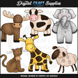Esta colección incluye seis animalitos adorables: un alce, una vaca, un elefante, un gato, una jirafa y una oveja. Este conjunto contiene 6 gráficos.