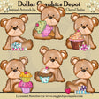 Esta colección incluye seis lindos ositos de peluche, pastelitos glaseados con chispas y cerezas encima, una fresa fresca, dulces envueltos y un cono de helado con chispas y una cereza encima. Esta colección gráfica fue creada utilizando una técnica de coloración especial que realza el sombreado y la textura de los gráficos. Son muy bonitos... ¡y únicos! Este conjunto contiene 6 gráficos.