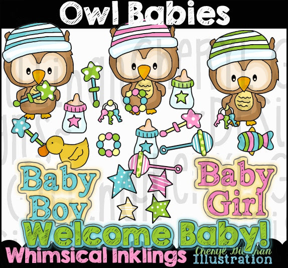 16 Piezas... Bebés Búho... Colección Clipart