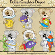 Aquí hay algunos ejemplos de lo que puedes crear usando estos gráficos de "Cachorros en el espacio":
