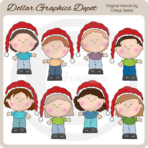 Esta colección incluye adorables niños pequeños con gorros de Papá Noel. Este conjunto contiene 8 gráficos.