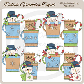 Esta colección única solo está disponible en Digital Craft Supplies. Este juego incluye bonitas tazas de copos de nieve pintadas con adorables hombrecitos de jengibre, paquetes de chocolate caliente, mini malvaviscos y palitos para revolver con forma de bastón de caramelo. Este conjunto exclusivo contiene 8 gráficos.