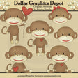 Esta colección incluye seis adorables monos calcetín con mejillas de corazón, corazones rojos y un globo en forma de corazón. Este conjunto contiene 6 gráficos.